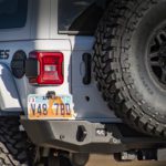 Our Expedition One license plate relocation mount provides an easy, visible solution for your license plate by mounting it to the left side of the bumper.