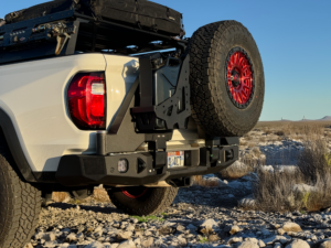 Our innovative, industry-changing dual swing latch design is now available for the 2023+ GMC Canyon and Chevy Colorado. This intuitive and rugged system with a robust latch system will keep your tire and gear secure out on the trails.