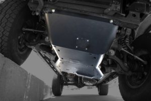 Side mount brackets provide extra durability for the rear transfer case skid plate
