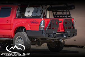 The Expedition One Trail Series S3 Single Swing Rear Bumper Carrier System latch design for the TACOMA 05-15 model -High Clearance Cut